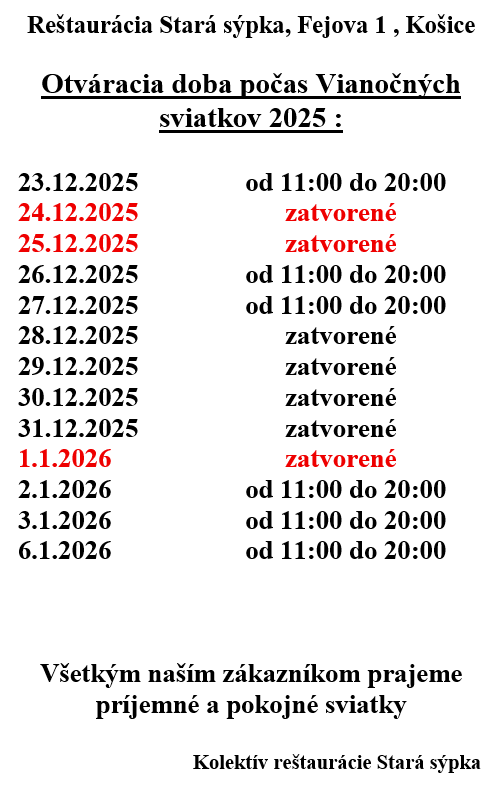 © 2015 - 2025. Reštaurácia Stará sýpka.